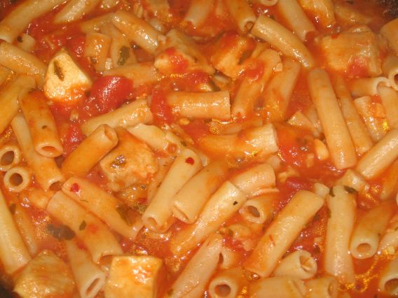 Here’s what I made for dinner this evening: pasta (made with brown rice flour) with tilapia and organic tomato sauce; also had a side of broccoli sauteed in virgin olive oil with garlic and hot pepper. This constitutes a perfect meal to me: pasta with tomato sauce and fish, and spicy, garlicky broccoli.