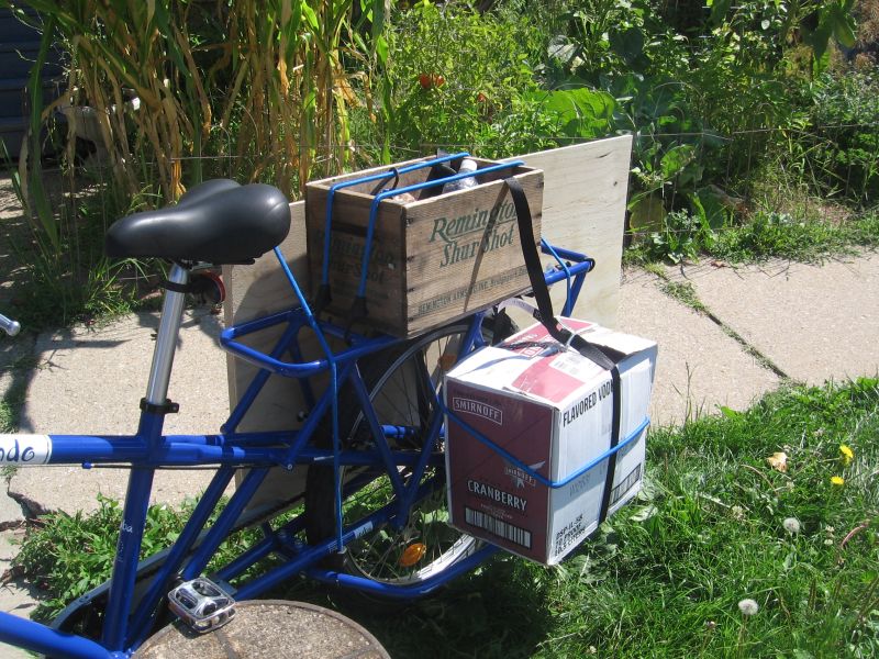 I have to say, that the ride did not change that much with all that stuff loaded on: this bike is truly solid. Yes, of course, I was aware of the load, but it was pretty tightly strapped and I was careful of potholes. While my trailer may be better at hauling groceries, there’s no way it could have hauled this (and almost effortlessly). There was not sway, I banked like I normally would, etc. This bike is solid.