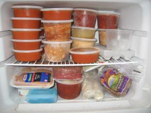 Anyhow, the process goes something like this: pick and wash the tomatoes, cut them into large pieces. I used to peel painstakingly peel them, but I found that using a blender the peels puree fine (and supposedly the skins are where most the nutrients reside). I then simmer them down in a large pot, add sauteed onions, garlic, and other seasonings, and puree it. The texture of a homemade sauce made with fresh tomatoes is so much different than that of canned tomatoes…it’s almost fluffy. I then package it and freeze it. Then when it’s in the middle of a bitter Buffalo winter I’m able to eat tomato sauce and remember the dog days of summer.