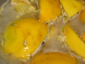 I inherited a few meyer lemons from work the other day. I knew that I had more than I would use so I salted them and put them on a shelf to ferment next to my current batch of kim chi. Salted and preserved lemons are a classic ingredient to Morrocan cuisine; the French refer to them as citron confit, which sounds a little more romantic (but it still means the same thing). At any rate, they’re simple to make: salt them, add water and/orlemon juice and whatever seasonings you like, and allow them to ferment. Once fermented the diced or slivered rind adds an excellent flavor to soups, stews, or a traditional tagine.