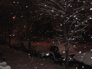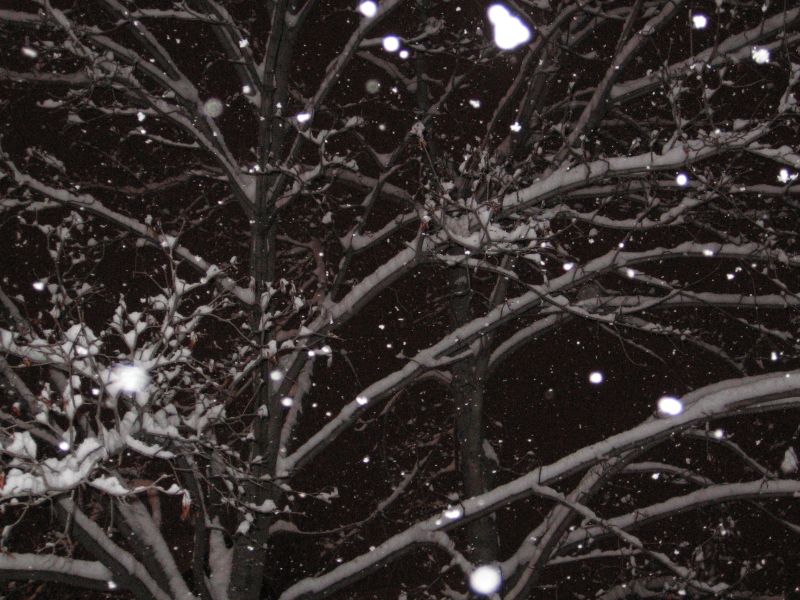 The other night I was watching TV and happened to glance out the window and saw it snowing. I wasn’t aware that it was supposed to snow (at least not that heavy). It was cold and the flakes were big and fluffy. I was taken by surprise. It was too beautiful for words, almost. So I had to take a couple photos.