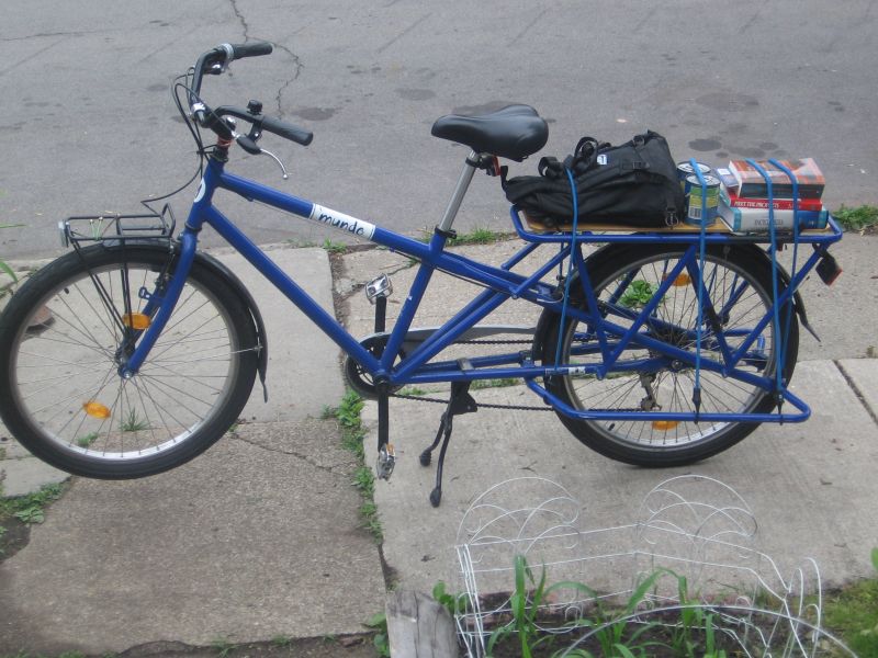 Things That Can Be Carried On A Bike (#25) Posted byJoeMay 27, 2009December 6, 2011Posted inBicycling, Mundo Yuba, Simplicity, urban simplicity, YubaTags:bicycling, Mundo Yuba, Simplicity, urban simplicity, yuba A gym bag.3 books.2 cans of soup. Share this: Click to share on Facebook (Opens in new window) Facebook Click to share on X (Opens in new window) X Like Loading... Related