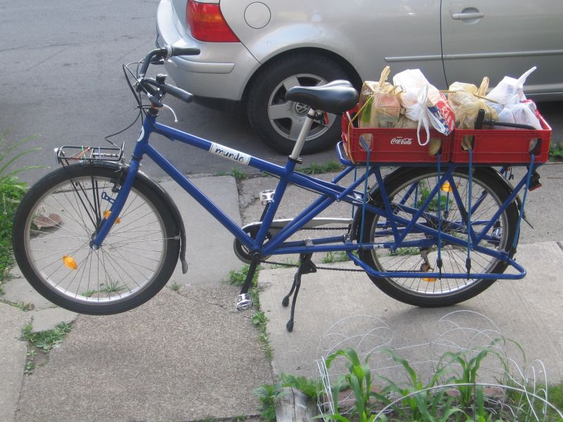 >Things That Can Be Carried On A Bike (#30) Posted byJoeJune 5, 2009February 10, 2011Posted inBicycling, Cargo Bike, Mundo Yuba, urban simplicity, Utility Bike, Yuba >Two plastic soda crates full of groceries. Share this: Click to share on Facebook (Opens in new window) Facebook Click to share on X (Opens in new window) X Like Loading... Related