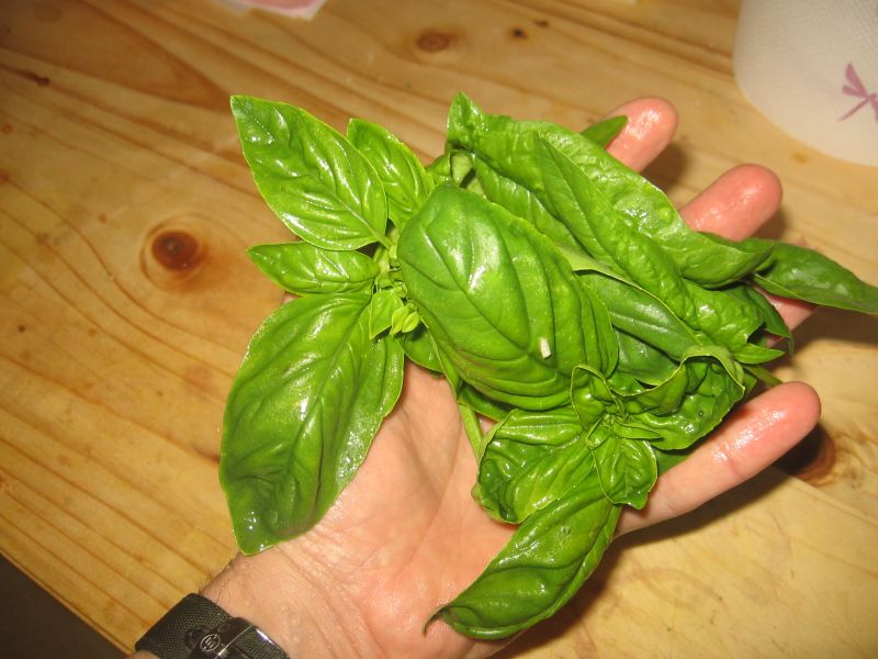 Then I realized I probably had enough basil in the garden so I shut off the flame to investigate. I was really surprised to see how much was ready to pick.