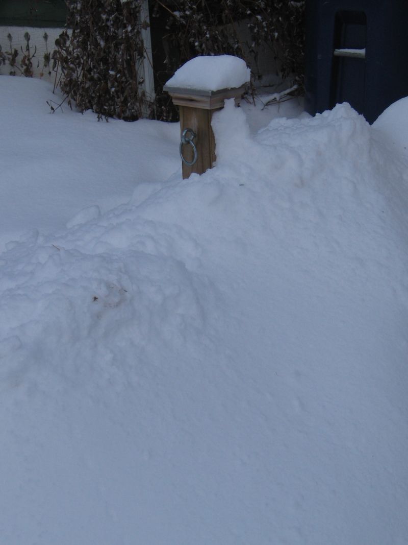 Whenever I begin to think that it is too hot I’m going to try to think of these comparative images: the first is of the Mundo that I took today…hooked up to my hitching post in the mini cornfield. The second photo is of the Mule hooked up to the same post during mid-winter. And the last is of the hitching post itself…unusable and almost buried in snow…at the time I was judging the weather by how deep the snow was on the post, today it depends on how tall the corn is…Ahhh…good ole’ summertime.