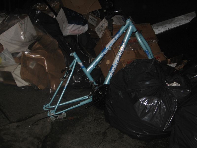 Lastly, walking back to our hotel one evening we came across this frame in the trash…it of course stopped me in my tracks. Sad, I thought. I’ve posted many times in the past how I am not immune to picking good things from other people’s trash, and as I stood there looking at it my son, who had a somewhat horrified look on his face says, “don’t take it dad…how will you get it home on the train?” Don’t worry, I told him…it’s only a Huffy. (But seriously, I’m surprised nobody has taken it…maybe they did…if it were in Buffalo I would have plucked it and donated it to Buffalo Blue Bike.)