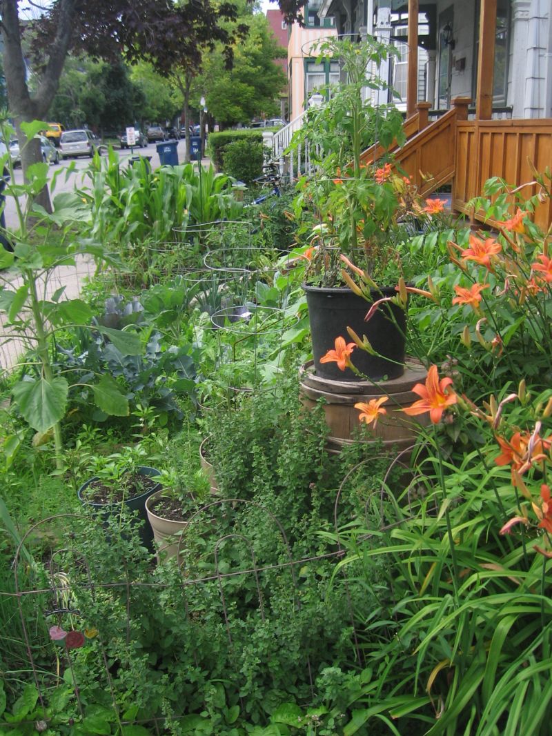 It’s early July and my vegetable garden has already become pretty wild…almost feral (despite our somewhat gloomy and overcast summer thus far). Every year I tell myself that I will weed better and not plant so close (they look so tiny when I put them in the ground)…and every year it becomes something past my control. None-the-less, I’ve already begun eating from it…a couple more weeks for tomatoes (my favorite) and at least a month for corn. Plenty of teeny peppers already, and Swiss chard, spinach, broccoli, and herbs…cucumbers and beans are on their way. Anyhow, here’s a few pictures of my front yard garden…and believe-it-or-not, there is some order to that chaos.