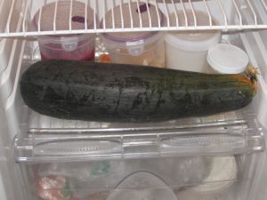 >I am addicted to the Barefoot Contessa's Zucchini Fritter recipe – it calls for two medium sized zucchinis so it might use up half of that giant thing! I have been known to eat them and nothing else for dinner, they are so tasty!