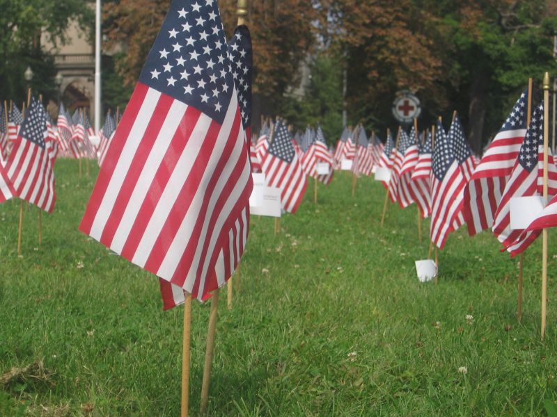 The front lawn of the American Red Cross on Delaware Avenue. Every year they place a flag on their lawn for each person lost in the 9/11 attacks. Each flag lists the persons name, where they were from, their age, and what their occupation was. It is very moving.
