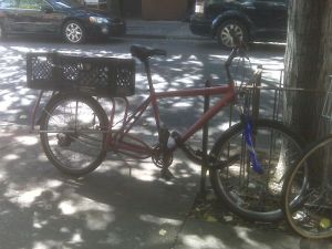 A friend sent this picture to me from NYC (Thanks Suzy)…she spotted it on Fourth Street in the West Village…looks like it’s a xtracycle conversion. My hope is that longtails will become more common place…they really are the most practical way to move things in an urban environment.