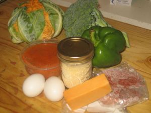 I am not the type of cook who buys ingredients to make specific dishes (ok, sometimes I do, but not often). My method of cooking dinner usually entails rummaging through the fridge and pantry to see what I have (or don’t have). And when you shop as infrequently as I do this is sometimes a challenge. But one of the advantages of working as a professional cook for many years is that it is almost second natural to make something really good out of what is at hand. Tonight, though, there was another factor to consider. When I asked my teenage son (who just had his braces tightened and was in pain) what he wanted for dinner he said he didn’t care as long as it was soft. Here’s some of the ingredients I came up with, and after I considered how I could cook them into something both delicious and soft, I decided on Polenta Bolognese con Uova, or Soft Polenta (cornmeal mush) with Meat Sauce and a Fried Egg (in a restaurant a meal is worth an extra five dollars if you list it in a foreign language…joking, of course, but it does make it sound more romantic.