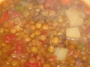 >This recipe is really a variation of the classic Lebanese lentil soup (which is often vegetarian). With the addition of lamb and potato it really becomes a full meal (the classic recipe also usually includes spinach or Swiss chard). The soup is seasoned with cumin, allspice, and just a hint of cinnamon. It’s also heavy on the garlic and lemon. But like any soup recipe this is really just a guide…the options are seemingly limitless (for a recipe that includes lamb and mint, click here; for a vegetarian recipe, click here). To read an article about Lebanese Cuisine on Sally’s Place (written by yours truly many years ago), click here.