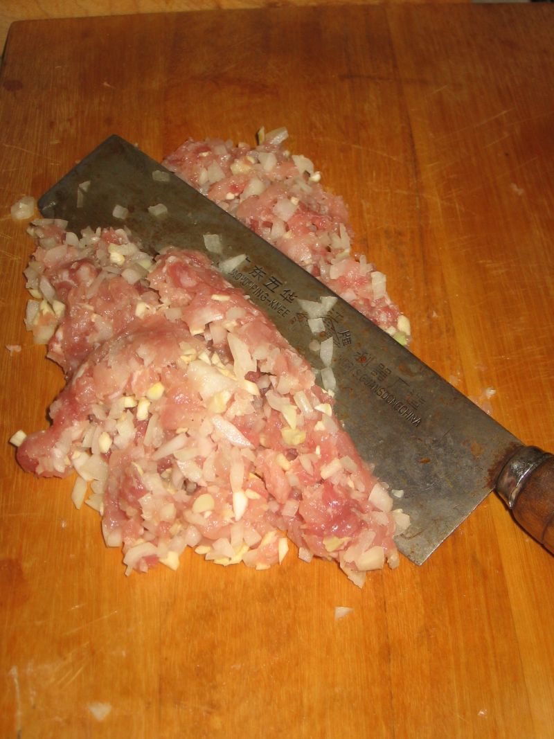 I chopped the meat, then diced and onion and a couple cloves of garlic and minced it right into the meat.