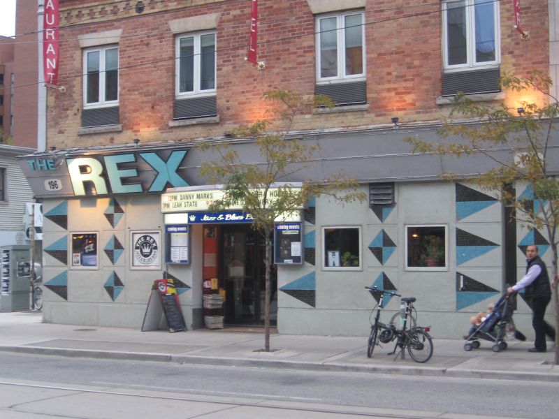 Yesterday I went up to Toronto for a quick 24 hour sojourn. I do this a couple times a year simply for a change of pace; I’ll spend my day/evening alternating between bookstores, cafes, and nightclubs. It’s such an easy trip…under two hours if traffic on the Peace Bridge and the QEW cooperates. I’ve done this since the first time I went there clubbing back in the day (around 1980, when I was 19…you can now do the math). It has, in fact, been many years since I’ve felt like a tourist in Toronto…I look at it as a sort of much larger cousin to Buffalo…only distinctly Canadian. Anyhow, in all these years I have never…believe-it-or-not…ridden a bike in the city. I love walking in large cities and have always don so there. To make a long story short, after recently having pain in one of my feet I have found it painful to walk long distances (an injury, maybe? more likely it is simply from working on my feet and rushing around kitchens for the past 30 years). I’ve also owned a folder for the past couple of years…so it was only a matter of time before I folded it and brought it with me. My folder is in the above picture parked outside the Rex Hotel on Queen West (my apologies to the guy in the photo pushing the stroller…he looks a little startled).