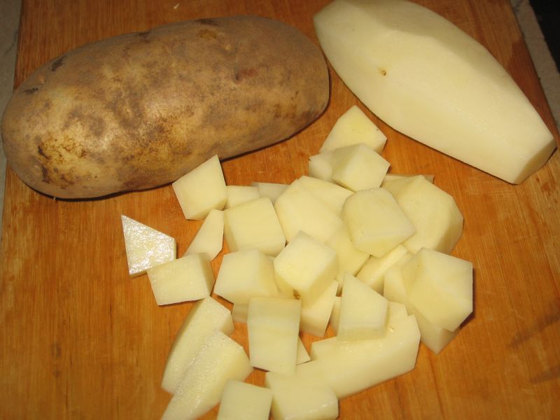 Bring the liquid to a boil, season it with salt and pepper, and skim any scum that rise to the surface. Simmer the soup until the potatoes are tender.