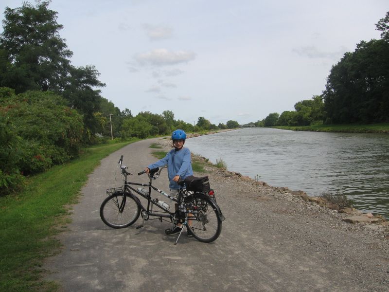 I own a tandem but unfortunately it has been in my basement for a couple of years. I used to use it to transport my son before he was a teenager…now, of course, he won’t be seen on it. Everyone in a while when I’m in my basement and I see it I think about selling it but I can’t bring myself to it. Before I owned the Yuba I had the notion to turn it into a cargo bike. Anyhow, here’s a photo of him with our tandem when we rode a few miles along the Erie Canal about 4 years ago.