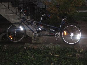 >It seems like I’ve been seeing a lot of tandems around town lately. Here’s a photo of a beautiful Raleigh that was parked just down the street from my house.
