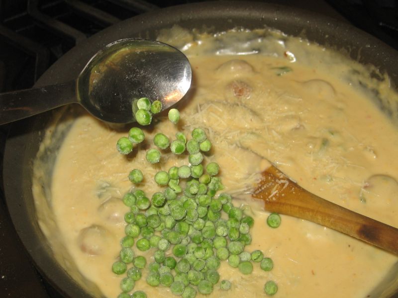 Stir in the peas, then the pasta…allow the pasta to finish cooking in the sauce (and absorb its flavor).