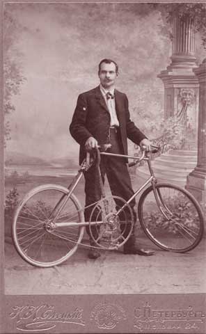 OK, first a couple things…one is that I found this photo here, and the second is…are you kidding me? Does anyone see the oddness of this guy’s fly wheel…I can’t even imagine what his gear ratio was. It must have taken knee-damaging strength to start off, but the warp-speed at which he was probably able to propel himself was likely even more unnerving. The photo is simply titled “tall geared Russian.” I can’t vouch if the guy is actually Russian or not…but his gear certainly is tall.
