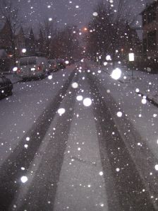 Ahh…those first few times it snows each year isn’t it beautiful (though it seems to have come significantly later the last few years…hmmm). I have always loved the change of seasons and particularly the winter (though not as much as I get older). It’s these first few snow showers of the year that make me feel like a kid again when I’m out in it. After riding my bike the short distance home from work I could see that the (car) drivers were like lunatics (I saw two fender benders) but still wanted to be in the elements so I walked to the health club for a quick steam and very short swim. I love to ride bikes in the snow, but after seeing how people were driving this evening it felt safer to walk. I had a rather harried day at work and the walk helped…how could you not smile when walking in those big fluffy flakes.