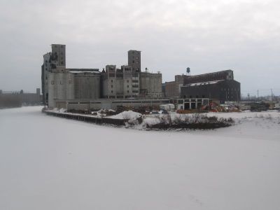 When I’m on a bike and riding through areas I normally wouldn’t, I feel as if I’m a tourist in my own city…this is something that could never happen from a moving car. One of my stops, for example, was a bridge overlooking the Buffalo River, which (I believe) connects to the Erie Canal. Anyhow, it’s the site of many old and abandoned grain elevators, (and, interestingly, I learned today that grain elevators were in fact invented in Buffalo). Standing over the frozen river I found this scene particularly beautiful and tranquil.