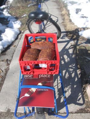 Things That Can Be Carried On A Bike (#140) Posted byJoeMarch 7, 2010December 6, 2011Posted inThings that can be carried on a bike, urban simplicityTags:Things that can be carried on a bike, urban simplicity Three loaves of still-warm whole wheat sun-dried tomato bread. A plastic crate. The current edition of Mise en Place magazine. A u-lock. Share this: Click to share on Facebook (Opens in new window) Facebook Click to share on X (Opens in new window) X Like Loading... Related
