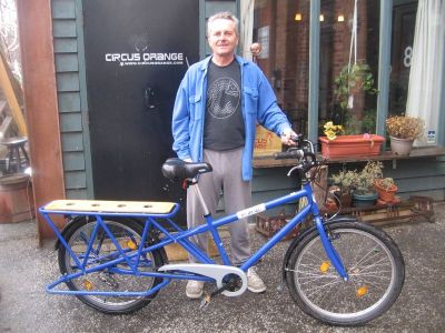 Yup…it’s true, I finally sold the Mundo. The above photo is the bike with its new proud owner (he was nice enough to let me take his picture). The bike will now traverse the streets of the beautiful and bike-friendly city of Toronto. I’ve been trying to sell it for a little over a month, and I have to say that when I finally did it was somewhat bitter sweet…I really liked that bike; it might have been my favorite thus far. The good news is that it went to a good “bike home.” The new owner has years of biking experience and multiple bikes, including a sort funky homemade long-john cargo bike. The bike is in good hands. But it’s still odd to be sans Mundo. I’ve been riding my old Trek (aka, the mule) since yesterday. While I like this bike also (it’s my all around-everyday-hauler-winter bike) it just seems so…well, short. I had a slight panic attack today when I wondered what I would do if I found myself in need of hauling something substantial (egads!). But I did hear from Ben at Yuba Bikes today that my new v3 Mundo was finally picked up by UPS, so I should receive it in a week or so…I’ll keep you posted.