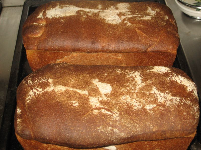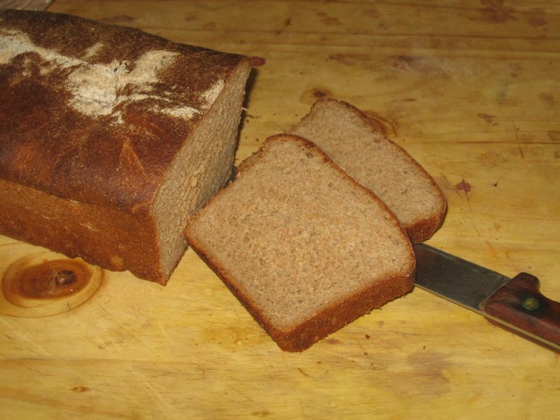 After preheating an oven to 400F I baked it for about 1/2 hour. The hous was filled with the distinctive aroma that only whole wheat bread can prove…it was warm, sweet, nutty, but most of all delicious.