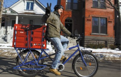 A couple things: First is that I rarely publish photos of myself on this blog. I don’t know why, I just don’t. And the second is that I also have difficulty with self-promotion. But I’m doing both of these things in this post. The above photo of me carrying crates on the v1 Mundo accompanies an article I recently wrote for Buffalo Spree about bicycling, click here to read that article. The below photo of my son, Isaac, and I on our tandem accompanies an article I wrote for the same magazine two years ago, click here to read that article. Both of the photos were taken by Buffalo Spree staff photographer KC Kratt.