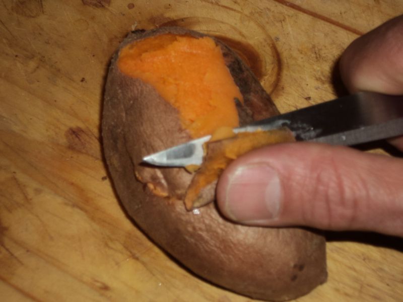 Then I cooked and peeled a couple sweet potatoes.