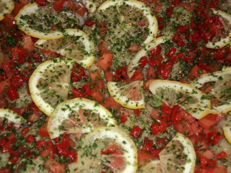 Baked fish with tomatoes, roast red peppers, and lemon. Drizzled with Saifan olive oil and seasoned with za’atar. Served it with house-made frites.