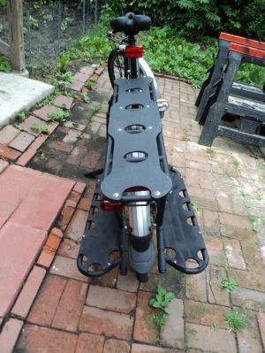 The reason these cost almost nothing for me to make is that I already had the wood…still had a piece left from when I built the top deck. My only cost was a $2.99 can of spray paint and a couple hours of my own time. If I had to purchase the wood it would probably cost another $8.00. By adding these sideboards I figure I’ve at least doubled my load capacity and loading options. I would be interested in hearing from other Mundo owners, Xtracylers, and other cargo bikers on their thoughts and ways in which they’ve modified their bikes.