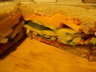 If you’ve been to this blog before then you know that I enjoy bread…I enjoy making it but mostly I enjoy eating it, and sandwiches are one of my favorite ways to do this. Almost any food, I’m convinced, can be made into a delicious sandwich. This, for example, is one I had today: