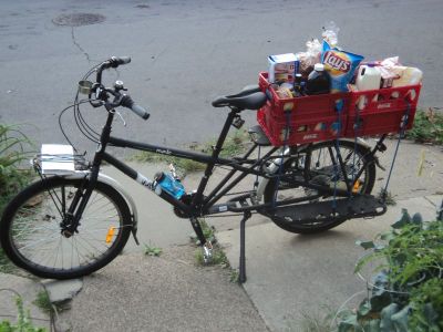 Him: (Looking at me as if I’m being a smart ass) You’re going to carry all this on a bicycle.