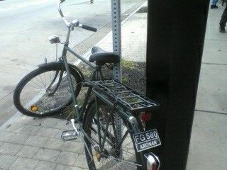 My son emailed me (via his phone) this picture of a Kronan bike we saw on Elmwood Avenue today. These are unique albeit simple bikes…looks very utilitarian. Actually a few years ago I almost purchased one. This is the first of these I’ve seen in the Buffalo area. Click here to go to the Kronan site; click here to read about their history at Wikipedia.