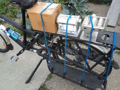 Two “old-school” hand-crank pasta machines and a small cardboard box with parts and accessories.