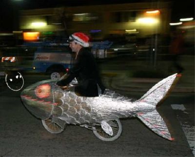 The above photo was taken by a friend on a recent trip to San Fransisco (thanks Monique!). It’s a pretty exquisite piece of machinery/art, is it not? I couldn’t help thinking how you’d have to have a certain strong constitution to ride a bike that was made to resemble a big fish on wheels. What gives, I wondered? Is it a publicity bike for a fish store? A band? I’ll probably never know. But I also began to wonder who else would ride such a bike so I Googled fish bike and was somewhat surprised…it seems there are plenty of fish in the sea, err…street. Out of curiosity, if there are any San Franciscans (or anyone else for that matter) reading this blog and you know the meaning behind any of these fish bikes I’d love to know.
