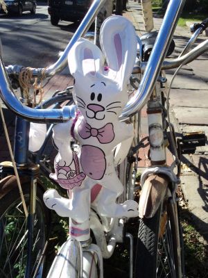 I came across this gaggle of hepcat bikes parked outside a restaurant on Allen Street the other day (and yes, I meant gaggle not Google) and happened to have my camera with me so I thought I’d share the photos. These bikes made me smile; their owners obviously have a sense of humor.