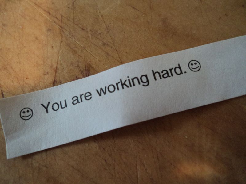 Friday nights are somewhat of a loose tradition with my son and I…we rent a movie and order Chinese takeout. And I always look forward to the fortune cookie at the end of the meal, not so much for the actual cookie but what my “fortune” will be. Call me a sap but I really like some of the positive messages they often contain…”you will soon be wealthy,” “love is in your future,” “you will live long and healthy” (click here for more). But when I finished my meal yesterday the fortune I received is the one pictured above. This summer and fall have been some of the busiest weeks I’ve worked in years (for various reasons)…umm, I don’t need a fortune cookie scribe to tell me how hard I work. With the money and love quotes they seem to be off the mark a bit…at least with this one they were accurate. Go figure.