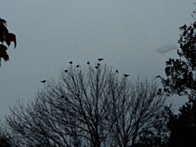This evening on my way home it was just before dark and the wind was blowing hard. I rode into it and was thankful I was not on a fixie and had the option to downshift. And as I pedaled I watched a large flock of crows as they weaved and floated in the wind above me (is that the correct term…flock of crows?). When I arrived home they were still overhead and I stood and watched them for a few minutes…they were beautiful and graceful. They eventually landed on various trees and swayed in the wind for a few moments before starting off again and heading towards Lake Erie. They looked so peaceful…it made me peaceful.