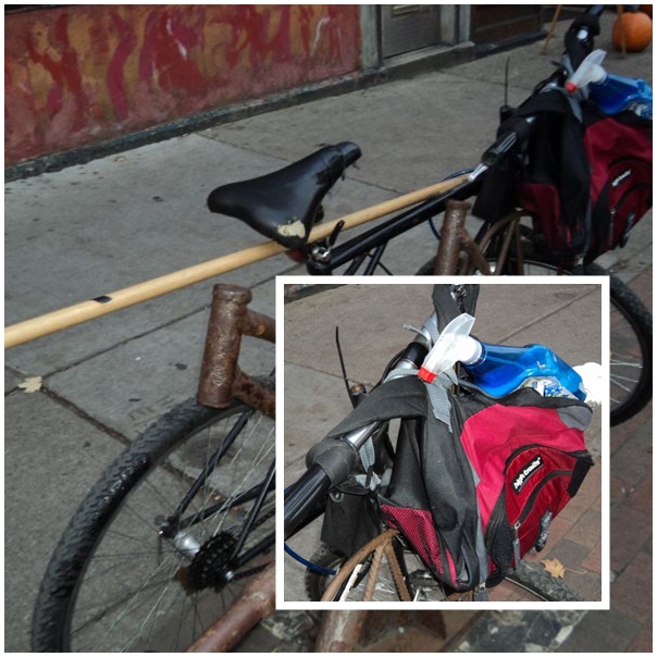 This is Bobby Ellis. I see him on his bike all the time and thought I’d finally introduce myself. What is interesting about him is not only that he uses his bike for transportation–that’s not that uncommon, after all–but that his bike is his business operation…sort of. If you live in Buffalo you’ve seen him…he’s a window washer, among other things, and carries his gear around on his bike with him. I was walking down the street this evening and saw him and asked if I could take his photo for my blog…he was all too happy. He also told me his YouTube name is the Fabulous Human iPod (because he sings) and that we could find videos of him there. Thought I’d post one along with these photos but have been unsuccessful locating any. Anyhow…I though this was pretty cool, the window washing bike rider...and he’s a human iPod.