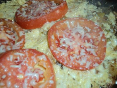I’ve posted recipes for this classic Italian egg dish before (click here, here, or here for additional recipes and pictures) but what’s interesting about this, I think, is that I’m still using vegetables from the garden (fresh, not fermented). The tomatoes have been ripening on a shelf in my kitchen for the past 9 days or so, and the peppers were part of my last harvest (I use the term loosely) that I picked a couple weeks a go. This is an exceedingly easy recipe to prepare, and it’s filling, delicious, and nutritious…and you can add whatever ingredients you happen to have on hand.