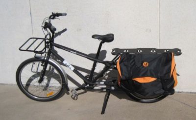 These photos were sent to me by fellow Mundo riders (thanks guys!). The above photo is from Max. Besides carrying what looks to me like a child’s seat (or is it two?), he also has a full-sized Shop-Vac, various tools, and a Go-Getter bag on the other side. I like the front pannier rack Max…and is that a Stand Alone kickstand holding the bike up?