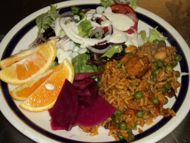 This is basically a variation on the classic recipe for Arroz con Carne de Puerco (Rice with Pork)…I decided to make it for an employee meal after I came upon some pork belly in the freezer that was left over from a party this past summer (and just a hint to the cook if you make this dish…while pork belly is delicious it is also very fatty, for that reason you cook it slowly at first to render much of the fat).