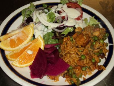 I seasoned the dish with turmeric, smoked paprika, and homemade chili powder. I ate it with a sweet orange, homemade pickled turnip and beets, and a green salad. It was delicious (leftovers for tomorrow).