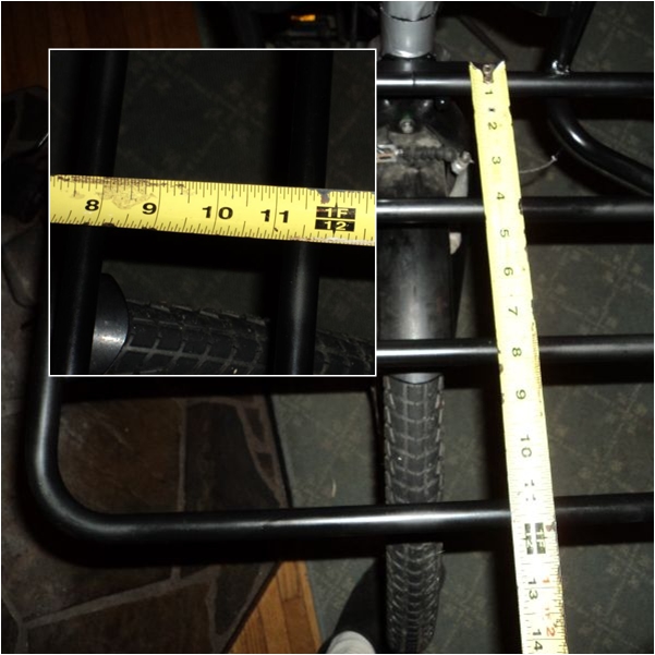 My only real complaint about this rack is that the bars on it are far apart…nearly 4 inches (10cm) apart. This fine if carrying a box or crate, but with single or loose items this may present a problem. I’m currently thinking about how I can rectify this with modification (I may attach thin wooden slats going in the opposite direction, creating a sort of bed for items). I’d be interested to hear what others have to say about this, whether it’s this rack in particular or another.