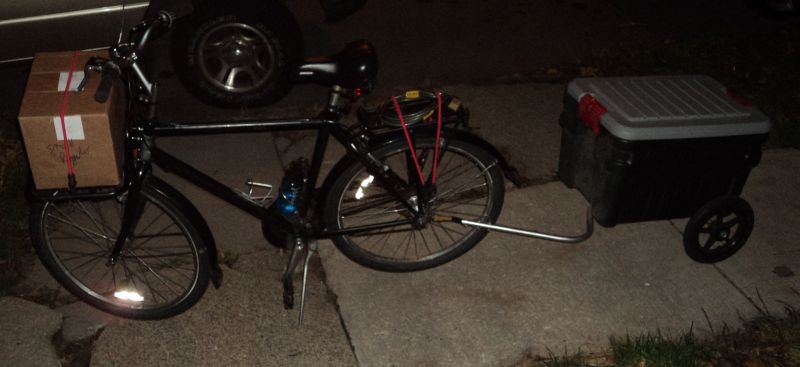 Hauling stuff by bike is really fun…and really easy to do. But the bikers reading this blog already know that. And if you are a skeptic saying…”well he has all that fancy bike stuff” (or something along those lines). My response is that you don’t need any fancy bike stuff—just a bike you enjoy riding–but it does help. And while it may seem financially exorbitant or a luxury to some…the Mundo is the equivalent of something like two or three car payments, and the trailer is one or two. And as I always say…it’s way more fun.