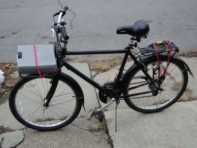 >That is a rack sold by Yuba Mundo in your neck of the woods…they are based in Sausalito, CA. Here's a link to the rack.http://yubaride.com/yubashop/product.php?id_product=43Here's a link to the bike, which is my main cargo bike.http://www.yubaride.com/Here's a link to my thoughts on it.http://citysimplicity.blogspot.com/2010/11/thoughts-on-new-bread-platform.htmlAnd as far as the bike, this is basically my "winter bike" though I do ride it year round. It's an old Trek I purchased at a flea market about 5 years ago for $40…since then I have put probably $200 into it. But I love it…rides great in the snow.Thanks, by the way for reading my blog…glad you stumbled onto it.