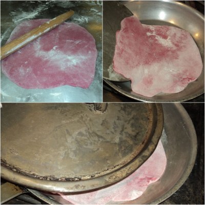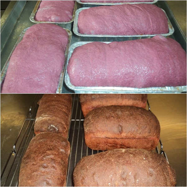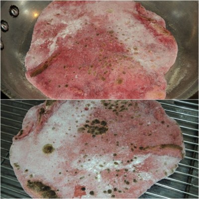 This post is proof of two things: (1) good and wholesome bread is simple to make, and (2), you can add nearly anything to the dough (within reason, of course) and have truly delicious and unique results. If you’ve been to this blog before you know that I like to bake bread, and that I do it often and with different flavorings; some of them unorthodox. This, I’ll freely admit, is one of the oddest, but the resulting bread is not only beautiful but also delicious. The idea for this bread began, oddly enough, when I reached into the back of a cooler at work and knocked over a small bucket of water that also contained raw, diced beetroot…yup, you guessed it, beet juice everywhere. Anyhow, I had forgotten the beets were in there (obviously) and as I was mopping up the magenta-colored liquid I had the brilliant idea (ok, maybe it’s not brilliant) to make bread with them. And after weighing and shaping the loaves I found myself with a small portion of the raw dough (that wasn’t really big enough to make a loaf), so I rolled it flat and cooked it as beet-flavored flatbread…delicious. I can feel my late Lebanese grandmother smiling at me. The flatbread, because of it’s short cooking time, retained much of it’s beautiful color, while the loaves themselves, which of course bake much longer, turned a golden brown with slight pink around the edges. Gorgeous. Anyhow, this is how to make it: