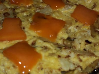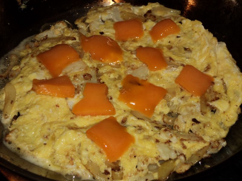 I like eggs, simple as that. They are versatile, can be adapted to almost any flavor–from breakfast to dessert–and they are easy to prepare. When my son is not home, as was the case this evening, I tend to cook very simple things. Tonight was no exception. After looking in my fridge I came up with a fresh cauliflower, onions, and eggs. So I made one of my favorite egg preparations: frittata (with a Near East flare). After caramelizing the cauliflower and onions with a good pinch of crushed dried chilies and cumin seed, I added minced garlic and the eggs. Just before I took the pan away from the flame I laid a few slices of sharp cheddar on the eggs, lowered the heat, and put a lid on the it while I sliced an apple and a couple pieces of bread, and poured a glass of wine. By the time the toast was ready the frittata had finished cooking. Simple and delicious…worthy to be sold in a restaurant.